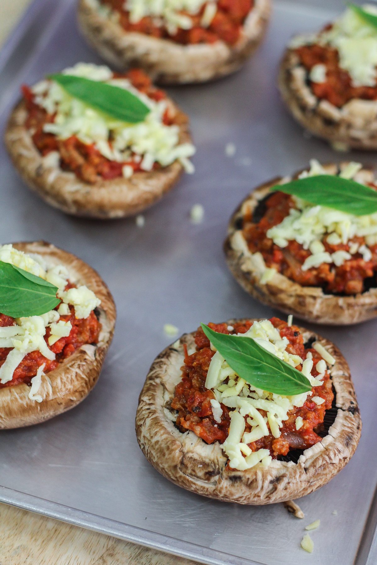Basically, you start with a bunch of huge Portobello mushrooms. You can either cook the Bolognese from scratch or use a readymade sauce for convenience. I used ground beef in the sauce but if you would prefer to go vegetarian, feel free to omit the beef and you could use some chopped peppers instead, for texture. Mushrooms are awesome for vegetarians as there is this “meaty” texture about them.