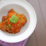 As I grow up, I noticed that the Peranakan cuisine has a whole lot of Malay influence to it. The spices used are pretty much the same as used in Malay and Indonesian cuisines.  I was going through Chef Wan’s Book and this recipe caught my eye. It is always interesting to try different types of cuisines. Although i did a couple of modifications, yet this Nyonya squid sambal is still delicious.  I served it with white rice and it was just perfect. You can substitute the squids with other seafood instead. I am going to try this with either crabs or prawns next. For those of you who love spice, do give this recipe a try!