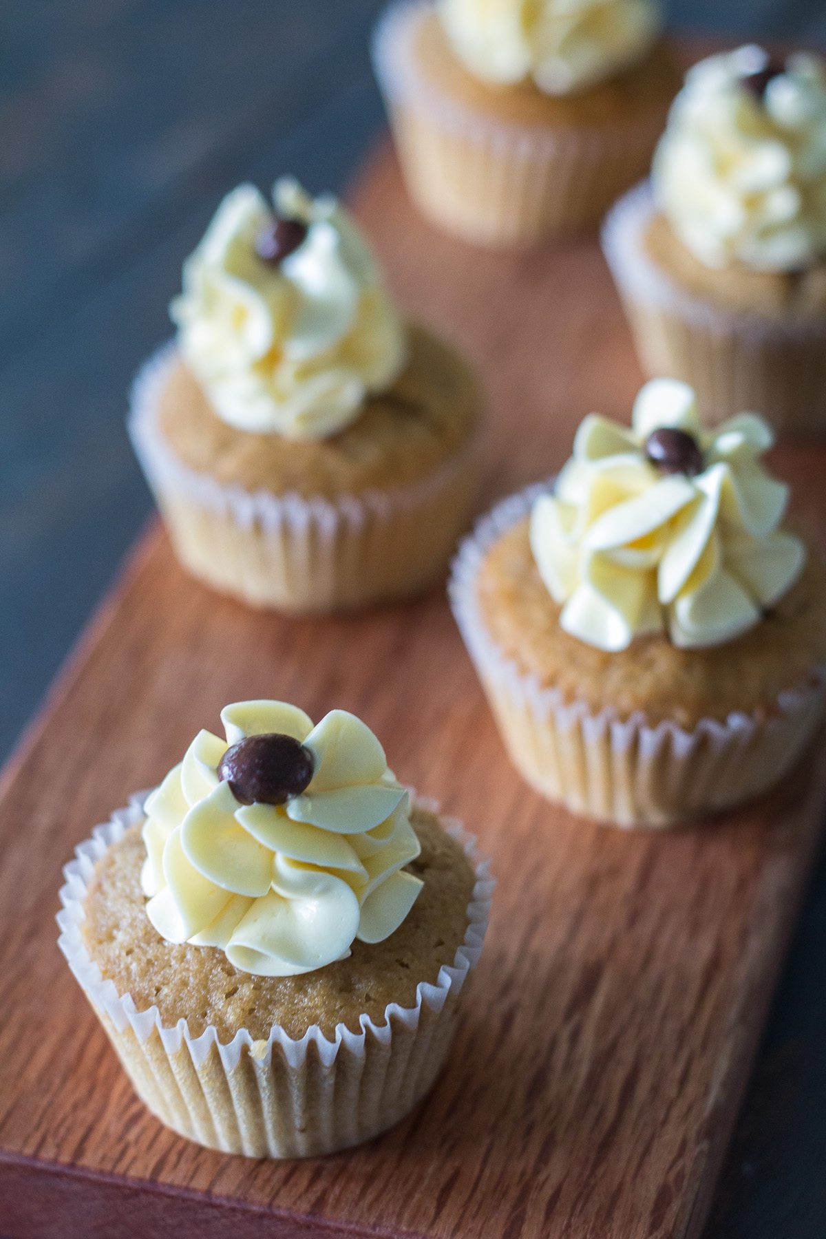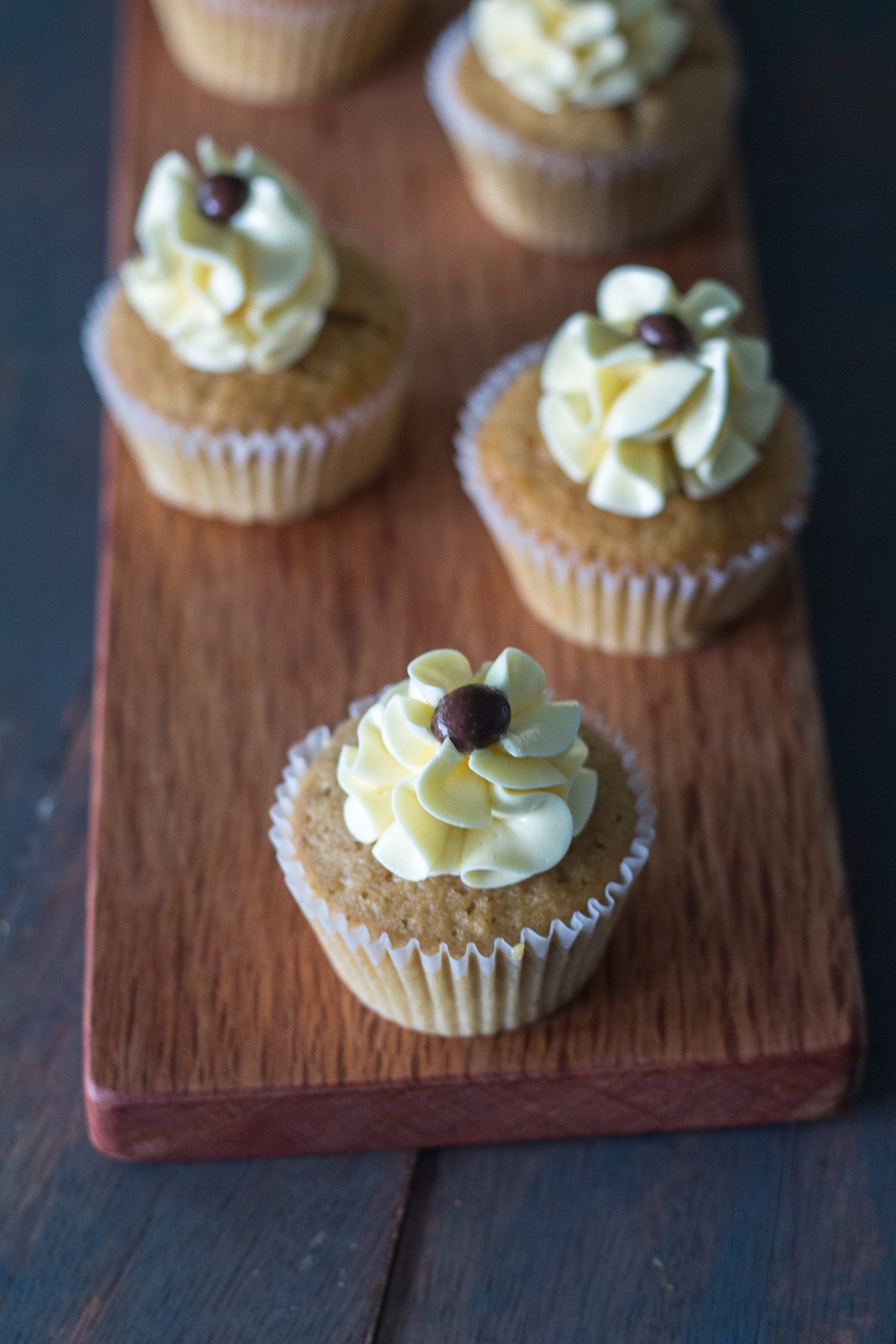 I used my favorite vanilla cupcake recipes and added a shot of espresso. I also substituted half of the cane sugar with brown sugar. There is a tiny weeny bit of espresso in the swiss meringue buttercream which really made this a subtle espresso infused buttercream frosting.