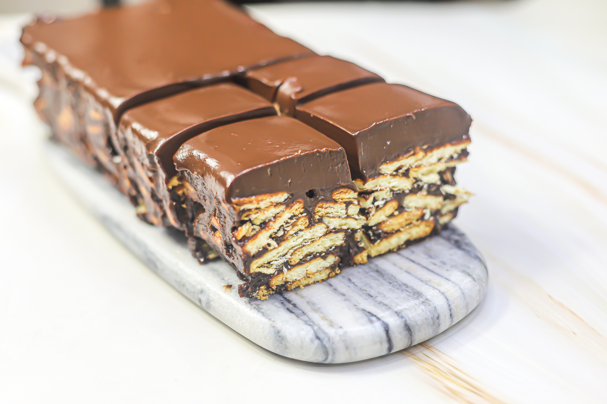 For the best results, it’s ideal to make this cake a day in advance, as the Marie biscuits will become soft, giving it that cakey texture.