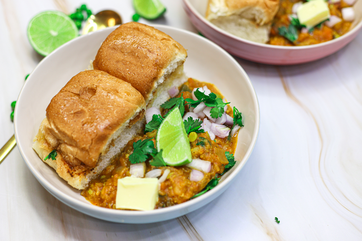 Pretty easy right? Trust me, this is going to be SO worth it. Pav bhaji can be enjoyed at any time of the day, be it brunch, lunch, or even dinner! Of course, the toasted pav/dinner roll is a must and you HAVE to serve these with chopped onion and a good squeeze of lime! And if you are feeling decadent, add another tablespoon of butter to the bhaji and go wowza!!