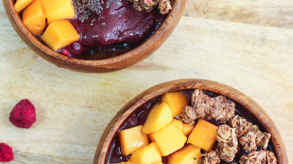 Okay fine. I’m lying. It IS Sunday and I AM sitting on my couch, but I am in my PJS, devouring two of these Acai Berry Bowls. Yup TWO and I am not even sorry. If I…