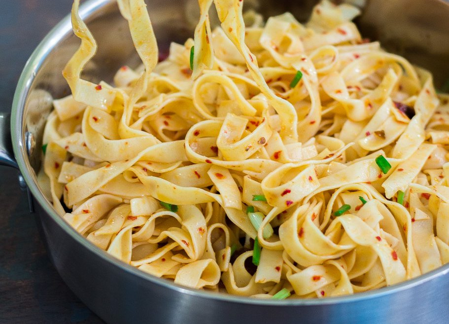 I always keep a packet or 2 of pasta in my pantry, be it a fettuccine, a spaghetti or even penne.